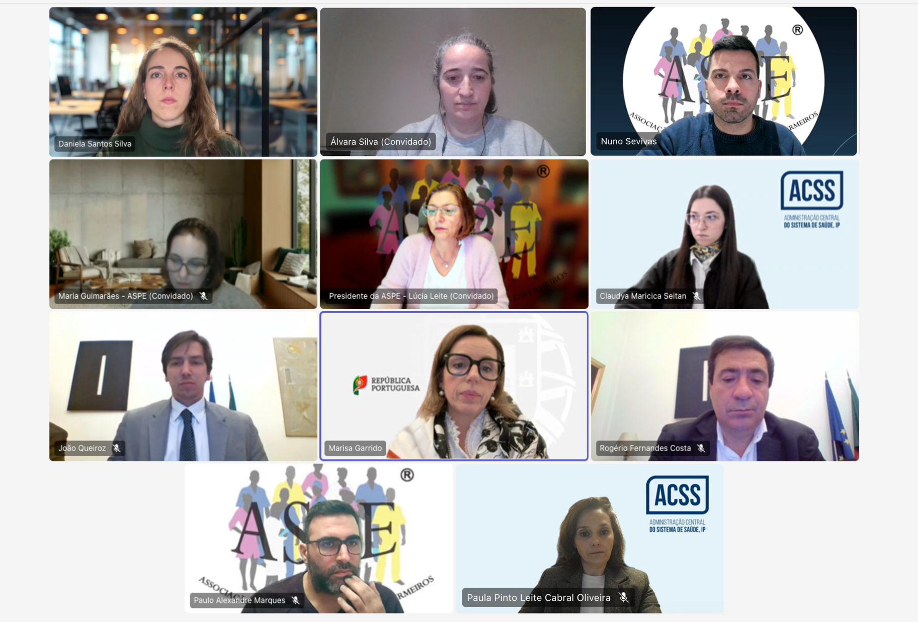 Nesta mesa de negociações, a ASPE fez-se representar pela Presidente, Lúcia Leite, pela Vice-Presidente da Direção Álvara Silva, pela Vice-presidente do Conselho Nacional Maria Guimarães e pelos Delegados Sindicais Nuno Sevivas (ULS de São João, EPE) e Paulo Marques (ULS de Lisboa Ocidental, EPE).