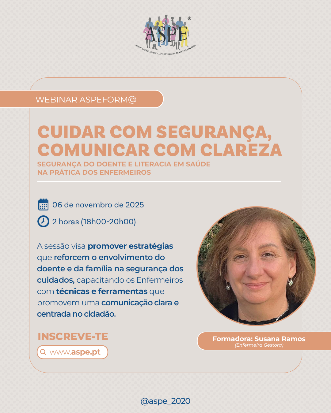 Webinar: “Cuidar com Segurança, Comunicar com Clareza - Segurança do Doente e Literacia em Saúde na prática dos Enfermeiros”