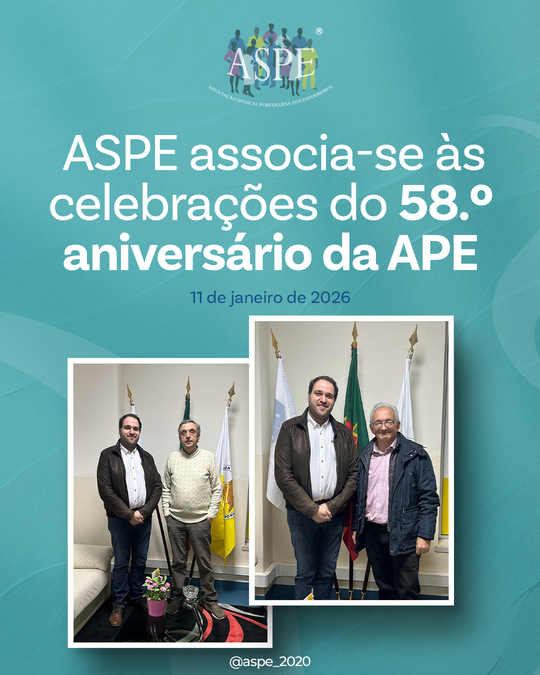 A ASPE participou, no passado dia 11 de janeiro, no 58.º aniversário da Associação Portuguesa dos Enfermeiros (APE), assinalando quase seis décadas de dedicação à valorização, desenvolvimento e afirmação da Enfermagem em Portugal.