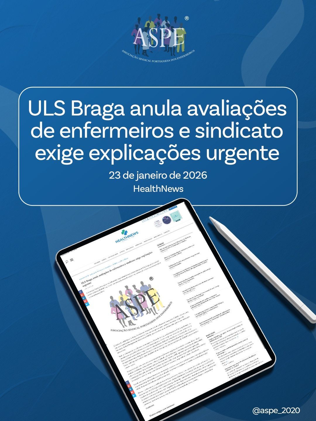 ASPE exige esclarecimentos à ULS Braga após anulação do ciclo avaliativo SIADAP 2025 para Enfermeiros