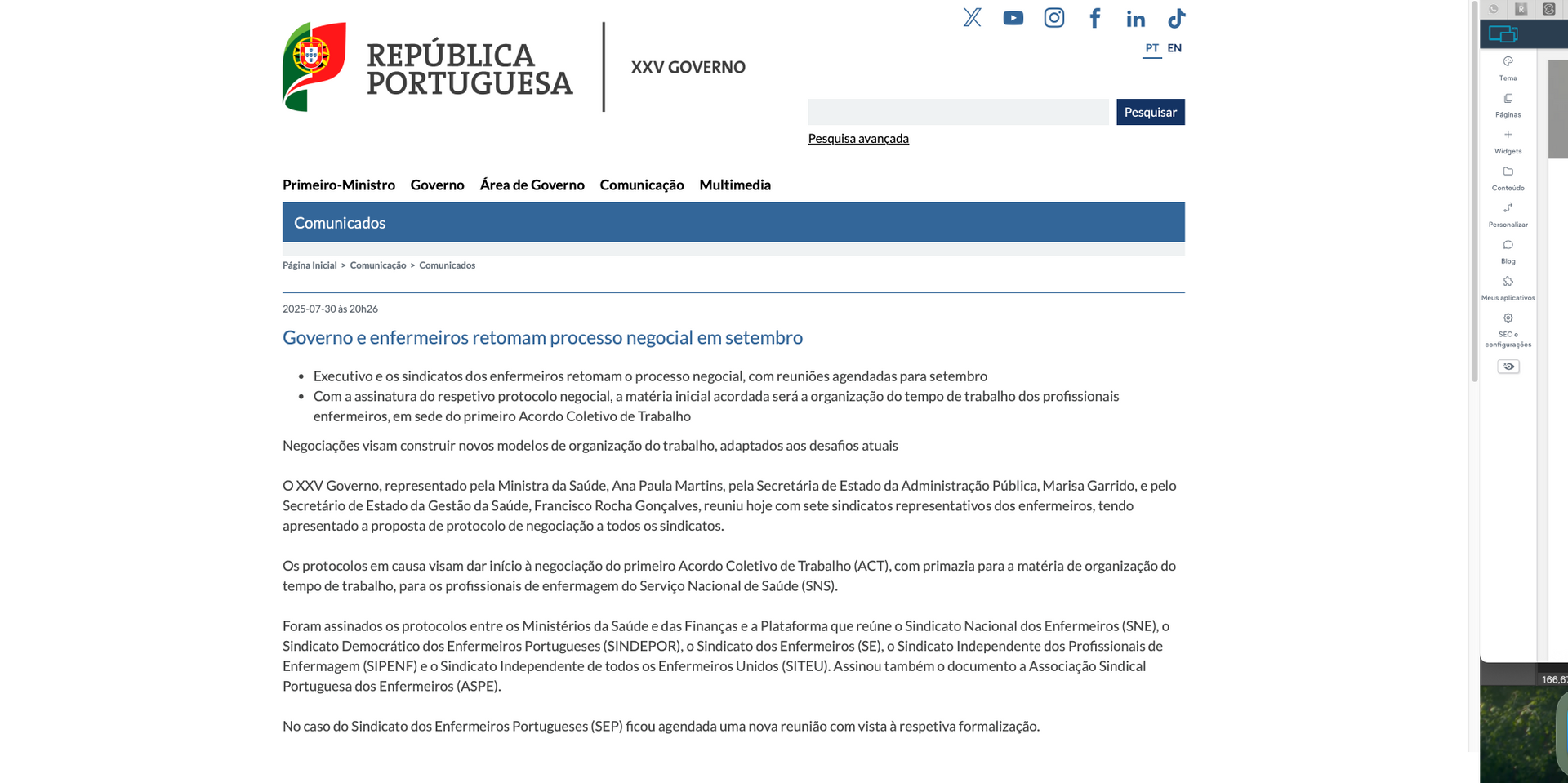 República Portuguesa- Governo e enfermeiros retomam processo negocial em setembro | 30 de julho 2025