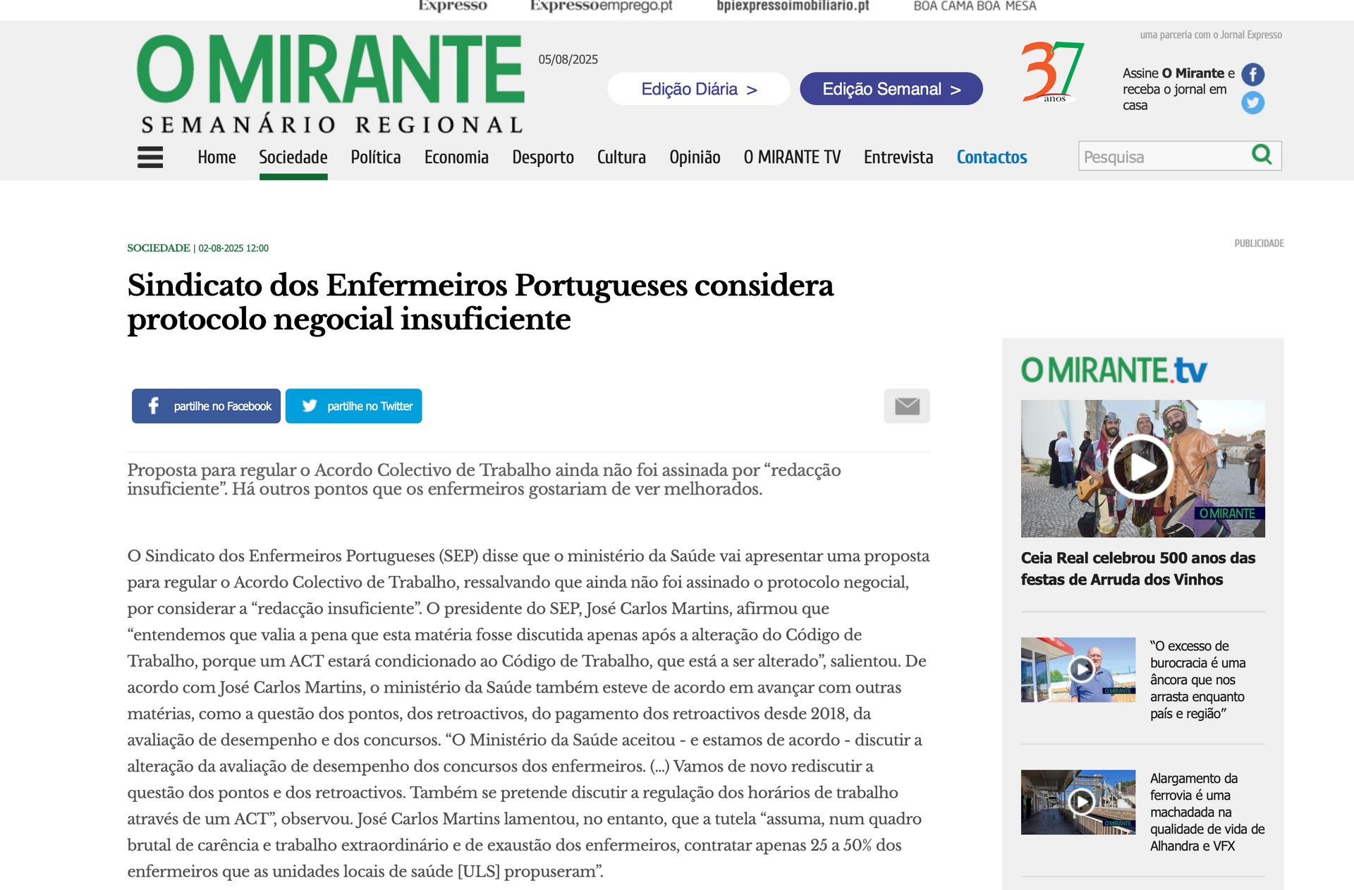 O Mirante- Sindicato dos Enfermeiros Portugueses considera protocolo negocial insuficiente | 02 agosto 2025