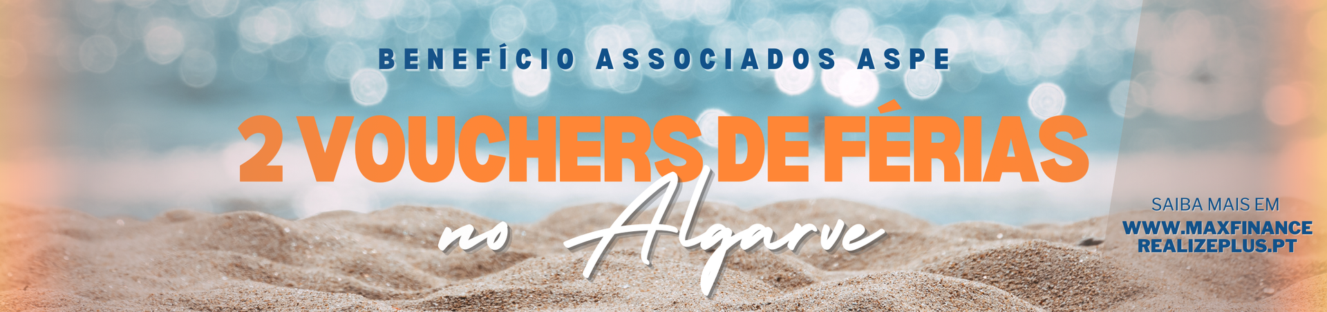 No âmbito do protocolo entre a ASPE e a Maxfinance Realize Plus, por cada contrato de crédito hipotecário, pessoal, automóvel ou consolidado realizado durante este ano com o apoio deste nosso parceiro, serão atribuídos dois vouchers de férias no Algarve aos associados ASPE e/ou aos membros do seu agregado familiar.