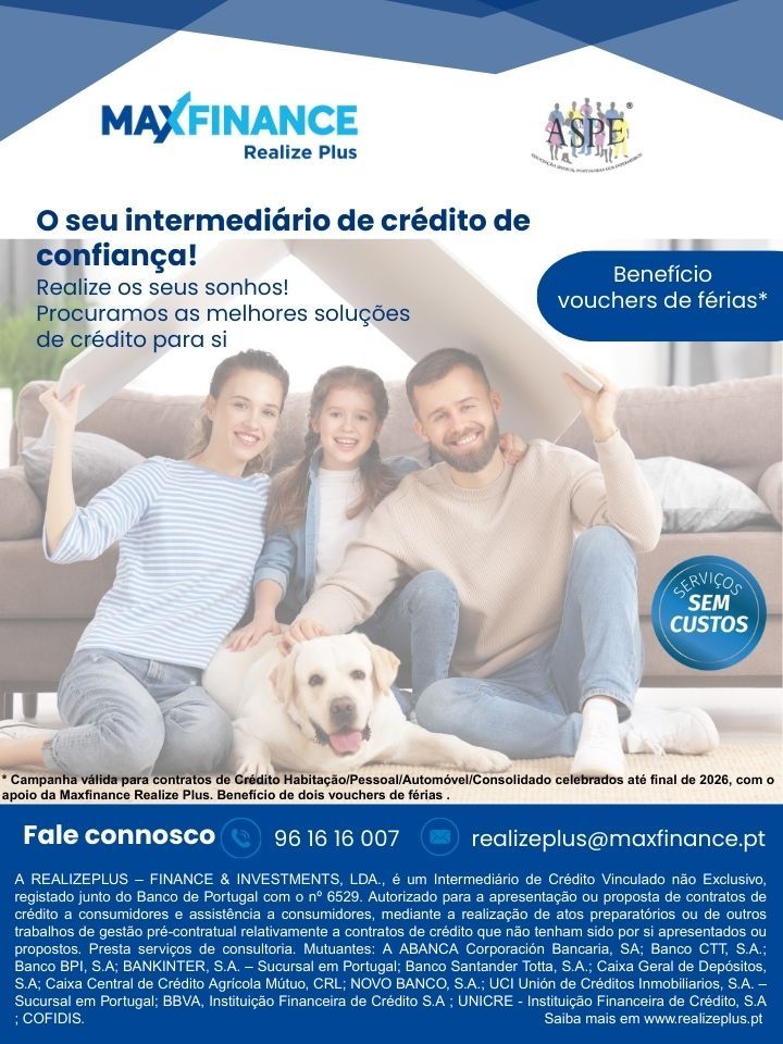 És associado ASPE e gostavas de passar uns dias no Algarve com família e amigos? Isso torna-se mais fácil com a Maxfinance Realize Plus. Por cada contrato de crédito que efetivares até ao final de 2026 com este nosso parceiro, terás direito a dois vouchers de férias válidos por um ano.
