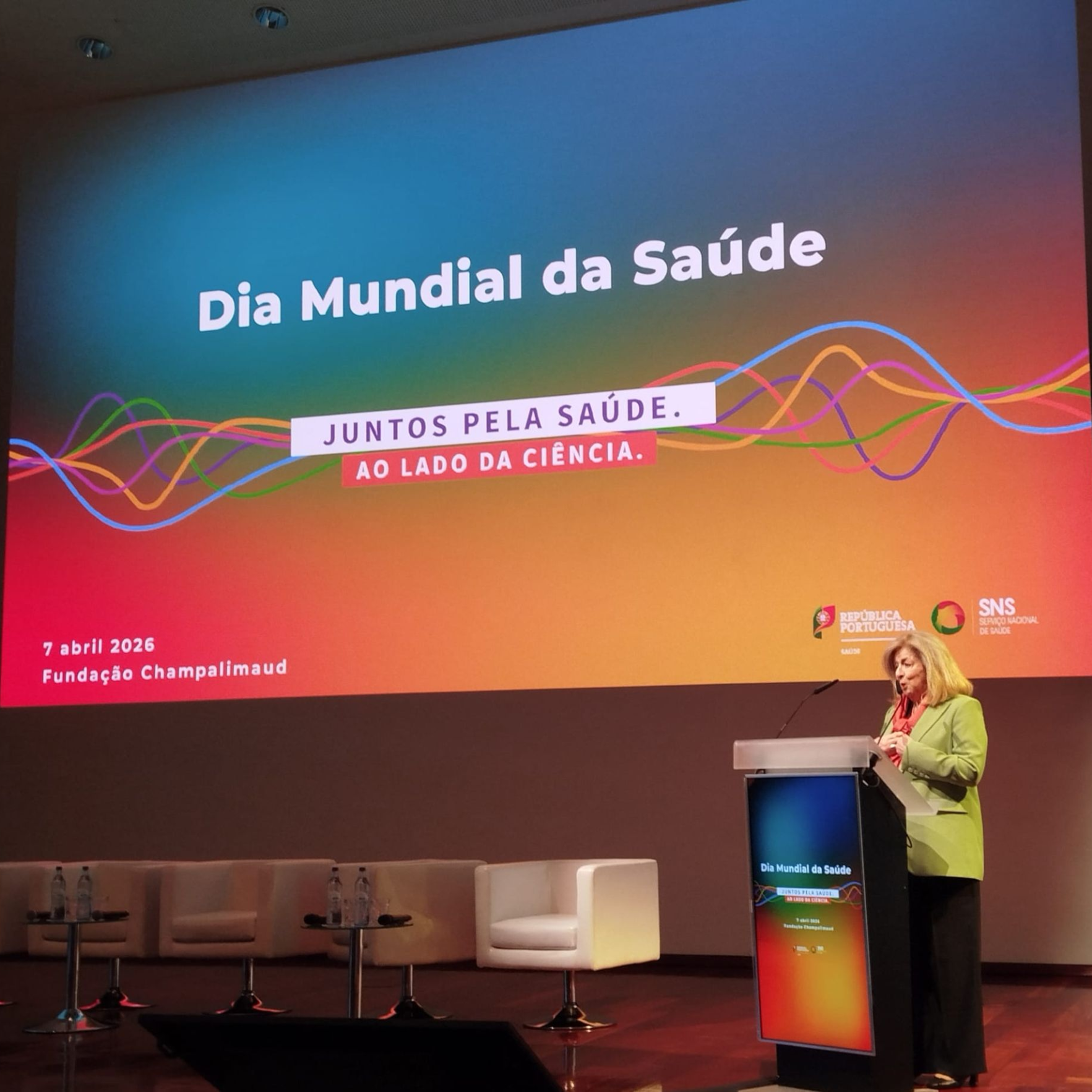 A convite de Ana Paula Martins, a Presidente da ASPE, Lúcia Leite, acompanhada pela Vice-presidente da Direção Álvara Silva, marcou presença nas cerimónias do Dia Mundial da Saúde, promovidas pelo Ministério da Saúde no passado dia 7 de abril, na Fundação Champalimaud, em Lisboa. Sob o mote “Juntos pela Saúde. Ao lado da Ciência”, a iniciativa reuniu membros do Governo, dirigentes de instituições do setor, especialistas, investigadores e profissionais de saúde para uma reflexão conjunta sobre os desafios e o futuro do sistema de saúde em Portugal.